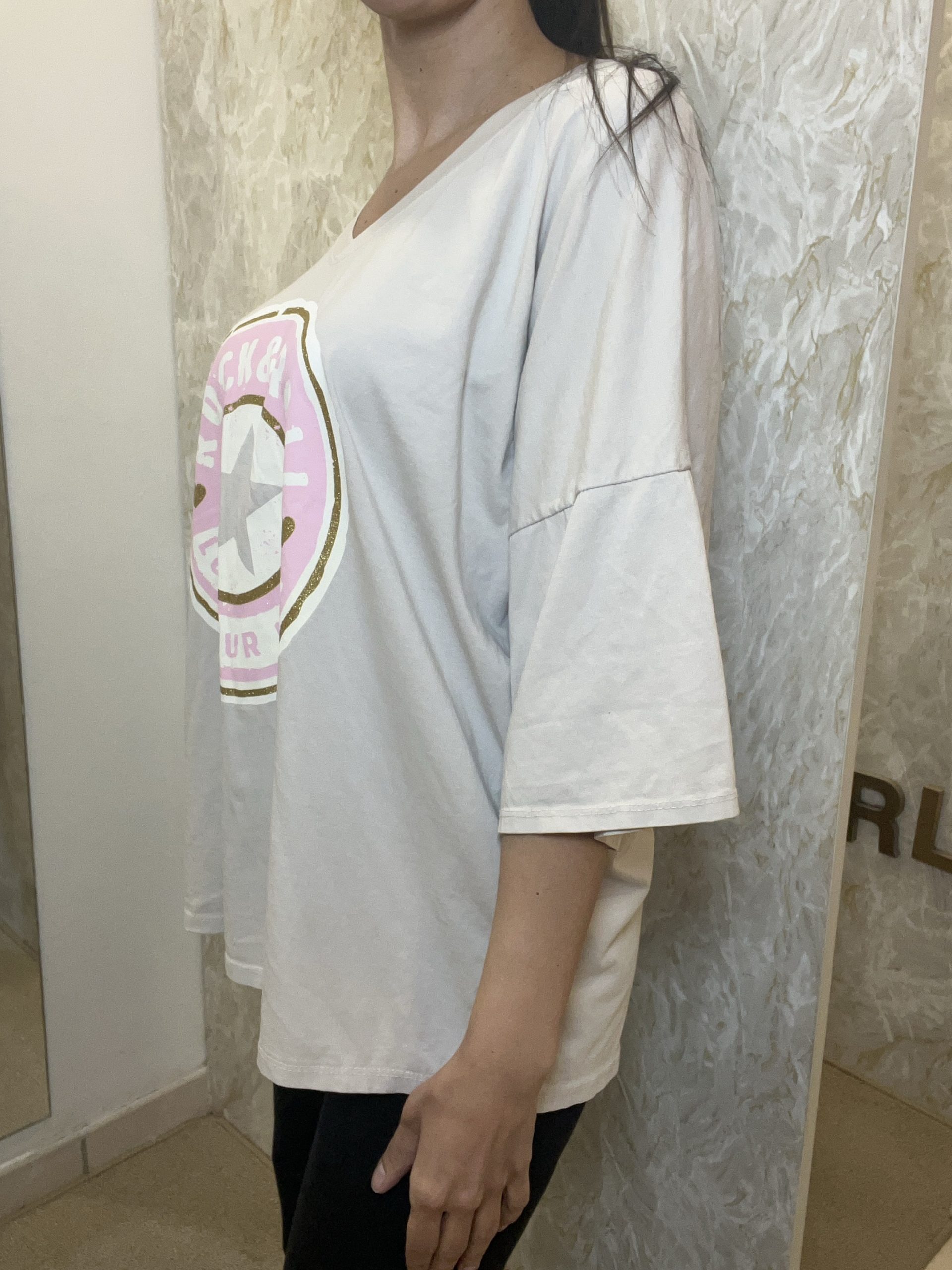 Ce tee-shirt en 100% coton taille du 34 au 46.